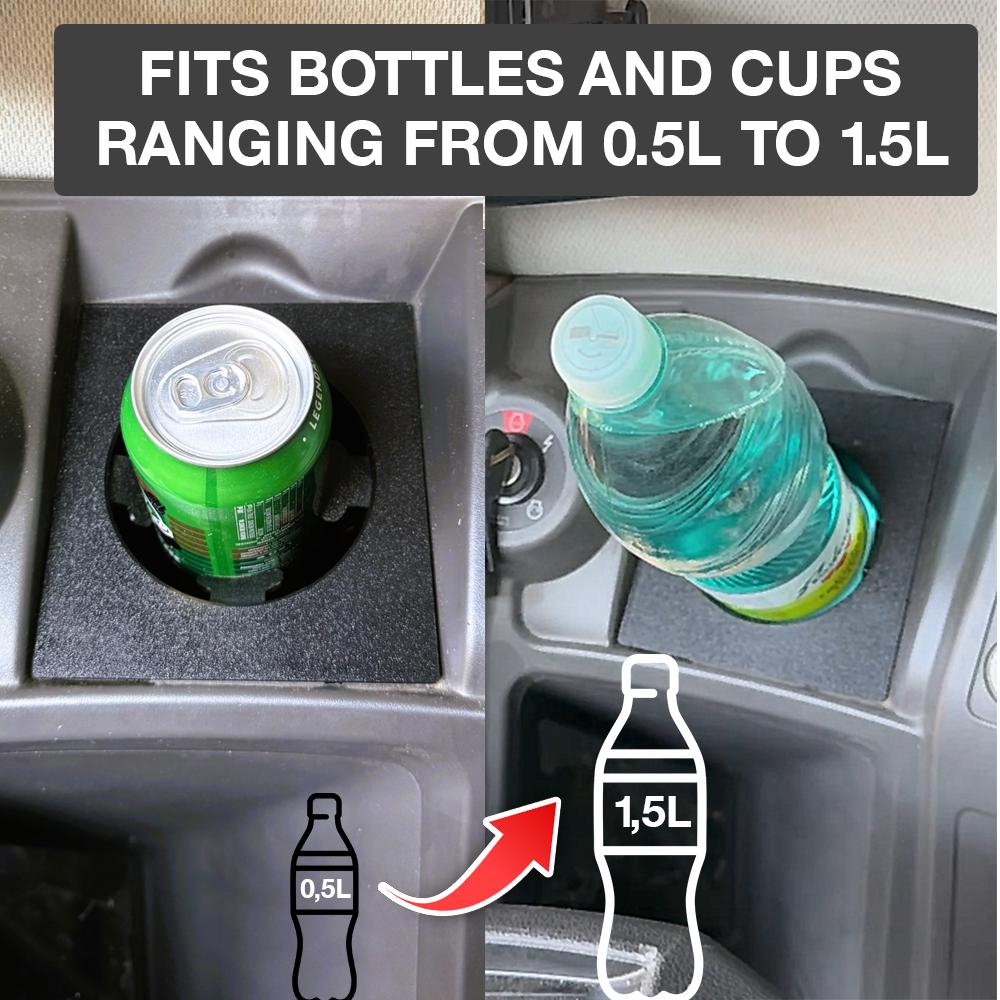 Univerzalna prilagoditev: Drži pijače med 0,5L in 1,5L varno na svojem mestu, zahvaljujoč gumi TPU vložkom, ki ohranjajo vašo steklenico ali skodelico stabilno.