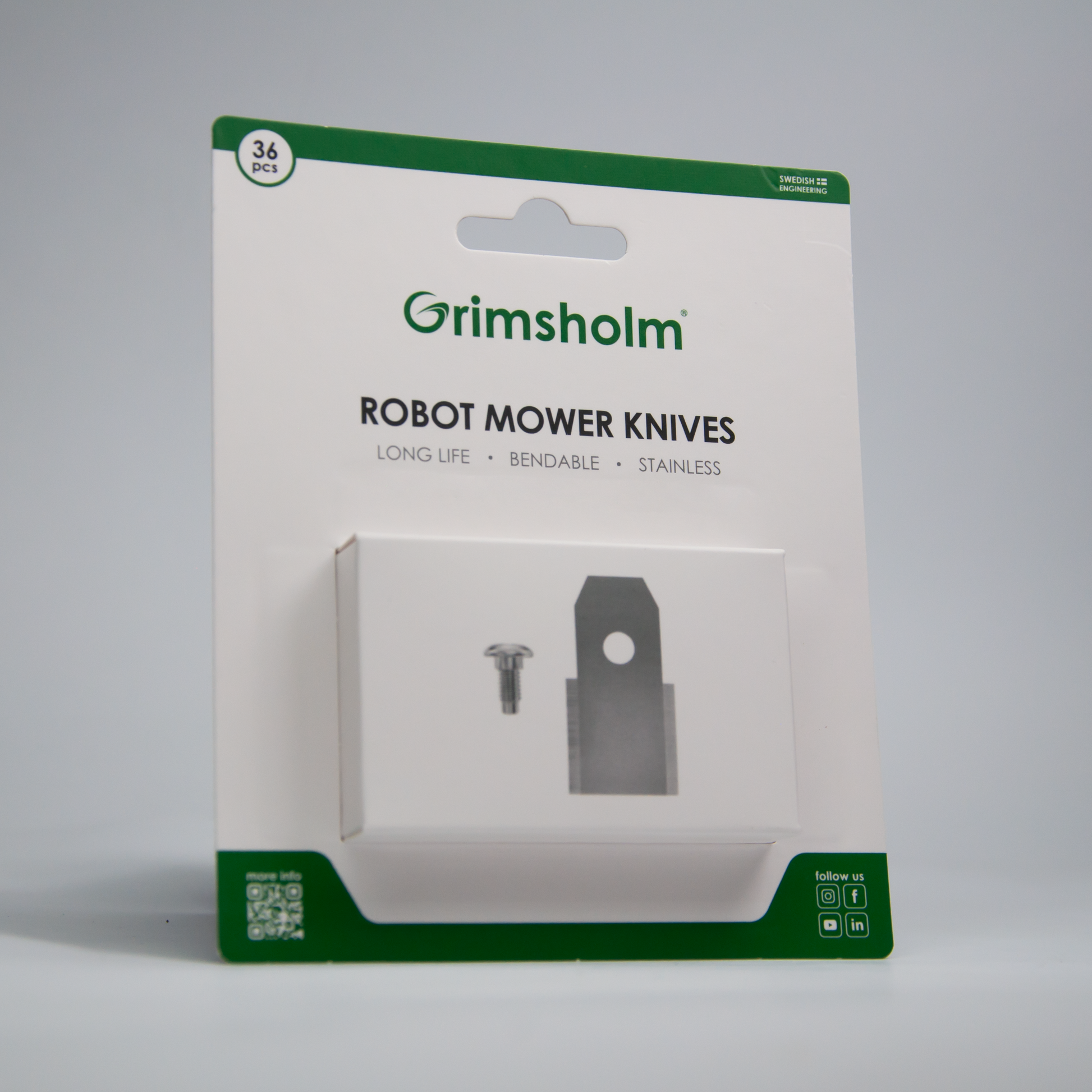 Visokokakovostna rezila Grimsholm za kosilnice Husqvarna Automower so izdelana iz nerjavečega jekla in zasnovana za popolno ravnovesje med vzdržljivostjo, ostrino in odpornostjo proti obrabi – za vrhunski rezultat košnje.